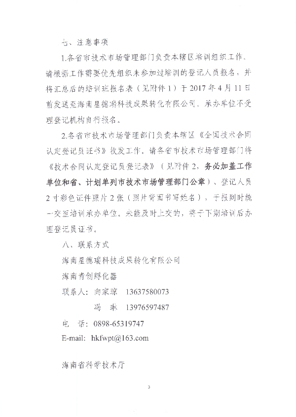 關(guān)于舉辦2017年全國(guó)技術(shù)合同認(rèn)定登記培訓(xùn)班的通知