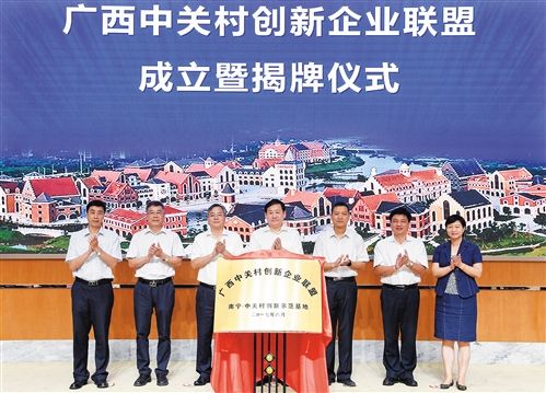 在南寧·中關(guān)村創(chuàng)新示范基地,廣西中關(guān)村創(chuàng)新企業(yè)聯(lián)盟成立暨首批會員揭牌儀式同時(shí)舉行。截至今年2月,中關(guān)村企業(yè)累計(jì)在廣西設(shè)立子公司221家,投資額總計(jì)94億元,分公司達(dá)549家。廣西中關(guān)村創(chuàng)新企業(yè)聯(lián)盟的成立對于加快聚集創(chuàng)新要素、構(gòu)建創(chuàng)新發(fā)展生態(tài),發(fā)揮南寧·中關(guān)村創(chuàng)新示范基地的輻射作用和溢出效應(yīng),將起到重要推動作用。