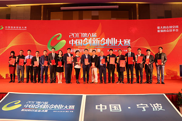 11月24日,2017第六屆中國創(chuàng)新創(chuàng)業(yè)大賽新材料行業(yè)總決賽在浙江寧波迎來終巔峰決戰(zhàn)。科技部火炬中心副主任盛延林,寧波市人民政府副秘書長胡望榮,寧波市科學技術局黨組書記、局長勵永惠等領導出席活動并頒獎。