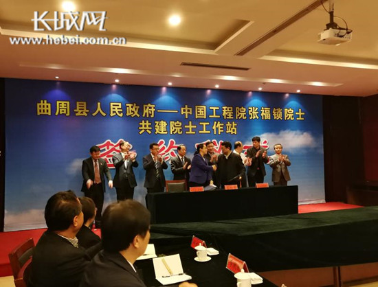 長城網(wǎng)邯鄲2月4日訊(記者鄧光韜張霖)2月4日,曲周縣人民政府與中國工程院院士張福鎖簽訂共建院士工作站協(xié)議,就推進(jìn)曲周縣農(nóng)業(yè)轉(zhuǎn)型、綠色發(fā)展,推動(dòng)鄉(xiāng)村振興,建設(shè)國家級農(nóng)業(yè)綠色發(fā)展樣板縣等方面內(nèi)容達(dá)成一致。這是全國范圍內(nèi)首個(gè)張福鎖院士工作站。