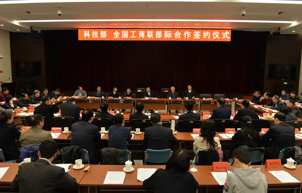 2月12日,科技部、全國工商聯(lián)簽署部際合作協(xié)議,就共同支持民營企業(yè)創(chuàng)新發(fā)展進行工作部署。全國政協(xié)副主席、科技部部長萬鋼,黨組書記、副部長王志剛,副部長黃衛(wèi);全國工商聯(lián)主席高云龍,黨組書記徐樂江,副主席黃榮,出席簽約儀式。