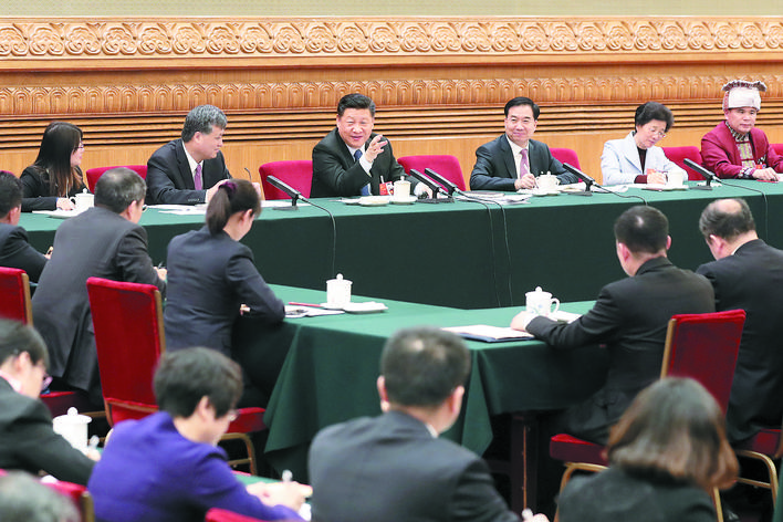 3月7日,中共中央總書記、國家主席、中央軍委主席習(xí)近平參加十三屆全國人大一次會(huì)議廣東代表團(tuán)的審議。新華社發(fā)(盛佳鵬攝)