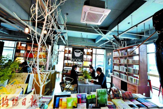 昨日,在高新區(qū)北航科技園新型眾創(chuàng)空間——云集圖書(shū)館,園區(qū)工作人員正一邊品嘗咖啡,一邊看書(shū)交流。