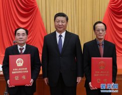 8日上午,國家科學(xué)技術(shù)獎勵大會在京舉行。 習(xí)近平出席大會,并向獲得2017年度國家高科學(xué)技術(shù)獎的南京理工大學(xué)王澤山院士和中國疾病預(yù)防控制中心病毒病預(yù)防控制所侯云德院士頒發(fā)獎勵